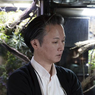 岡琢也(おか たくや)。Blue Gecko lab. 代表。アオマルメヤモリを筆頭に、様々な爬虫類のブリーディングを行う。幼少期から爬虫類の飼育や繁殖に慣れ親しみ、静岡県伊豆への転居をきっかけにアオマルメヤモリをはじめとする爬虫類の飼育を再開。コバルトツリーモニター、ポリロフェルスゲッコーなど国内での繁殖例がほとんどない希少種の繁殖にも成功する。屋号にもある通り青い生き物に強く魅せられ、こだわりを持っている。